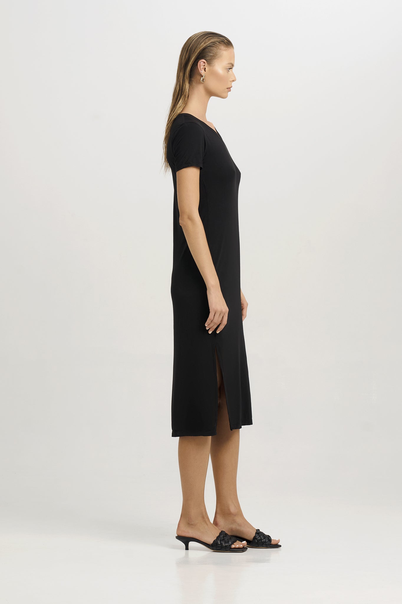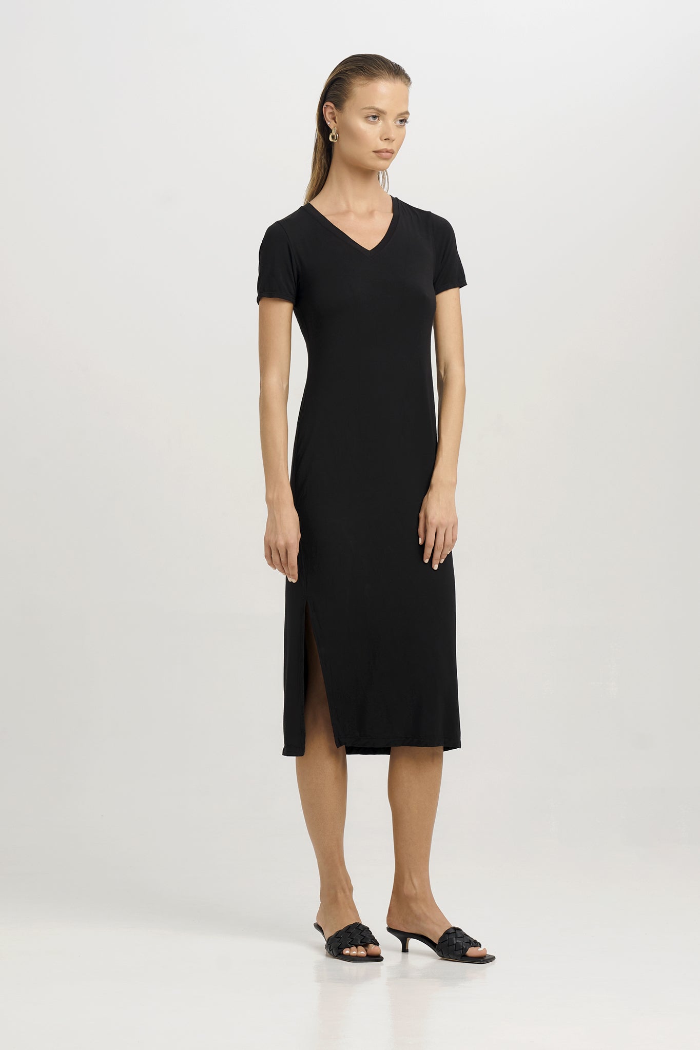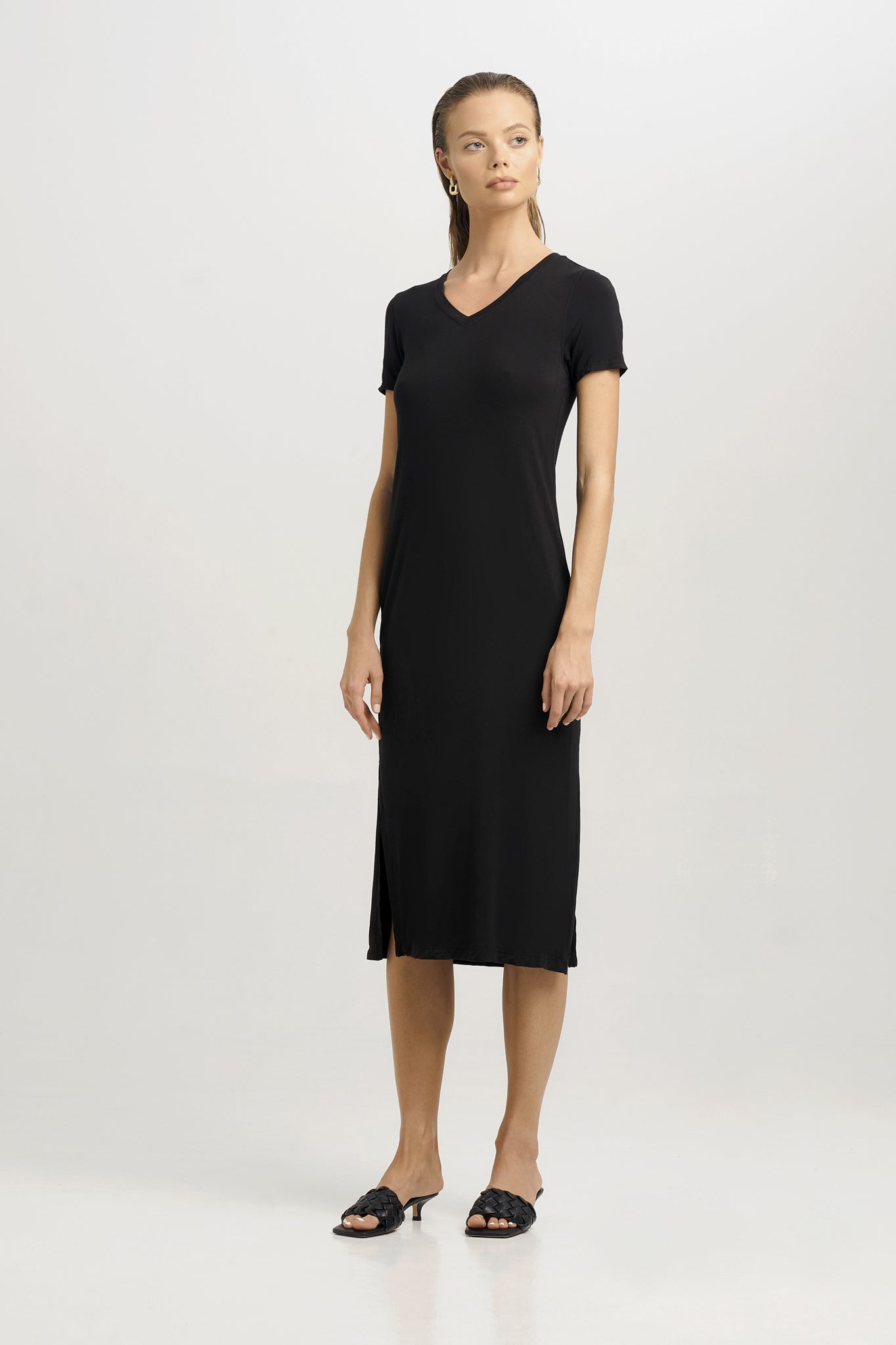 If you loved our best selling Alexa T- Shirt Dress, you'll love our new Marie V-Neck version which offers a similar fit with slightly higher slits on the sides. Crafted from our signature light weight bamboo viscose, this dress is ultra soft with extra stretch.